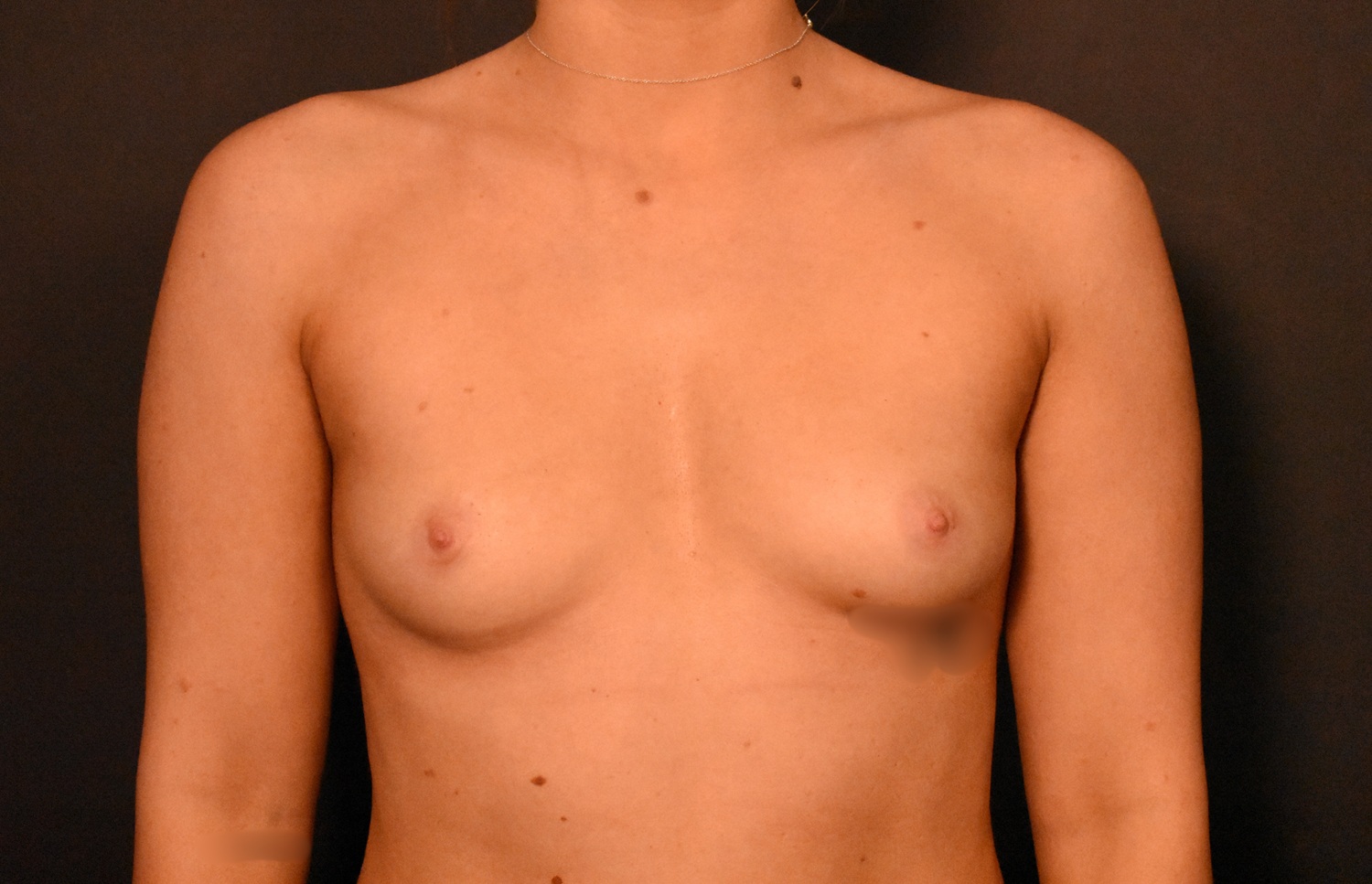 22 year old female with hypomastia and mild asymmetry. Used 385cc implant on the right and a 345cc implant on the left.
